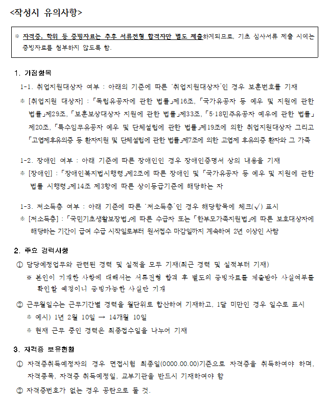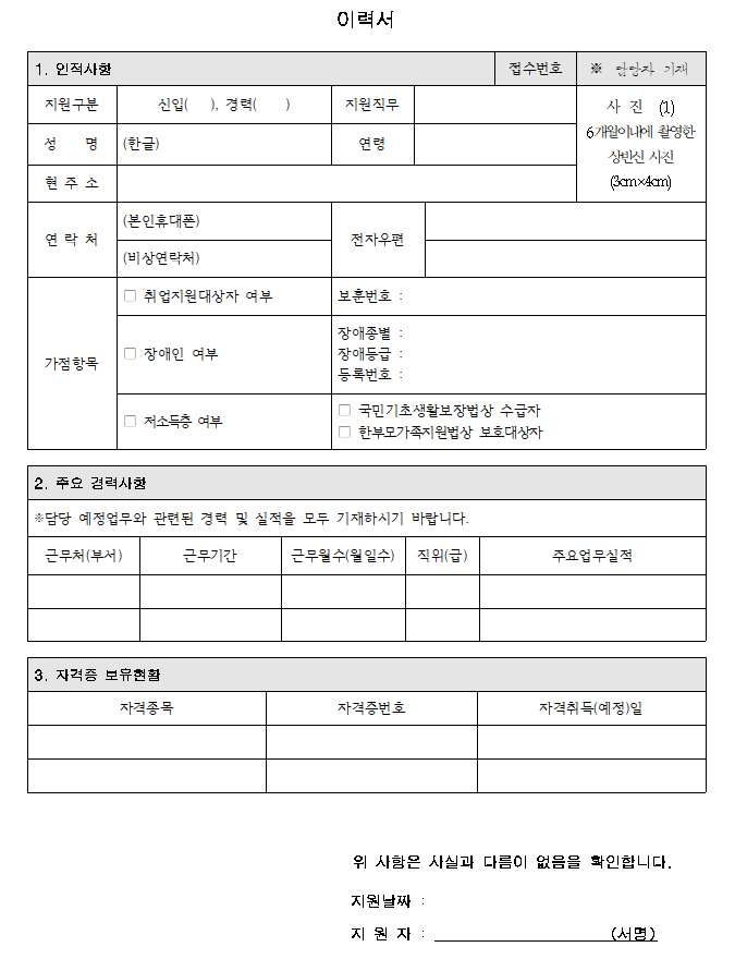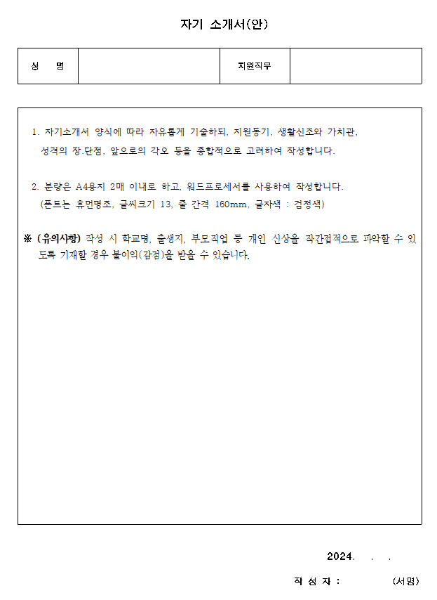 입사시 아래의 양식을 활용하여 제출하시면 되겠습니다.
