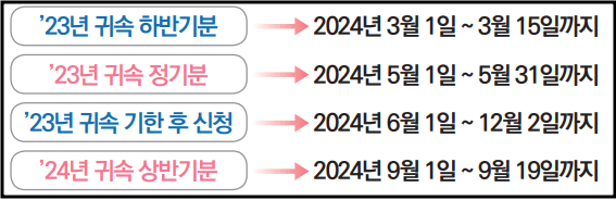 신청 시 상반기 소득은 9월에 신청하여 12월에 지급하고, 하반기 소득은 3월에 신청하여 6월에 정산합니다. 근로소득자는 기존의 정기신청 방식과 반기신청 방식 중 하나를 선택하여 신청할 수 있으며, 반기신청을 하지 못한 경우에는 다음 해 5월에 정기적으로 신청할 수 있습니다.