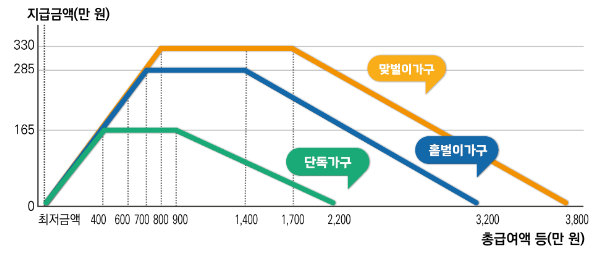 1인 가구는 최대 165만원, 맞벌이 가구는 330만원까지 받을 수 있어 조건에 맞다면 꼭 챙겨야 합니다.